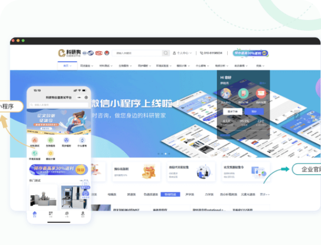 所属行业:测试平台由全国多家科研院所共同发起的公益性联合科研组织,合作中,以官网、小程序作为实现商业价值的载体, ERP系统和供应商系统作为运营和管理层配置的后台。形成一套完整的产业链,满足订单、客户、市场、财务、数据等全方面需求